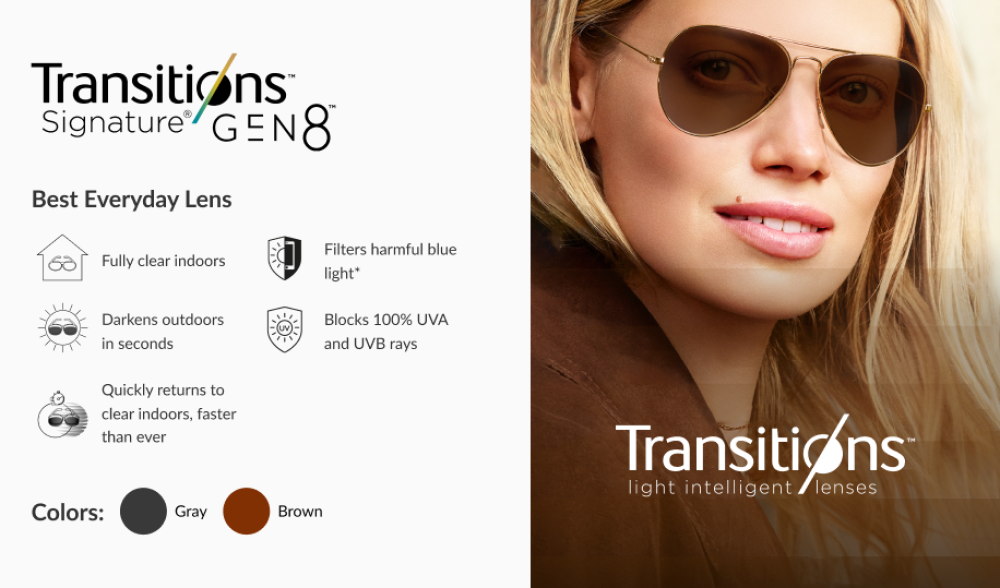 نظرًا لأن ترانزيشينز هي العلامة التجارية الأكثر شهرة للعدسات الفوتوكرومية ، فغالبًا ما يشار إلى هذه الأنواع من النظارات باسم "عدسات ترانزيشين". كما يطلق عليهم أحيانًا العدسات الأوتوماتكية أو المتكيفة بالاضاءة أو العدسات ذات الصبغة التلقائية أو العدسات ذات الصبغات المتغيرة .